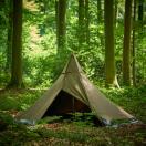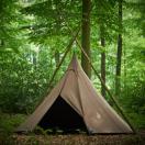 二人用のテントで最高品質のコットン素材に、フライを半分に切り離すことが可能です。さらに、頭頂部にはフックが付いているのでポールレスが実現できます。ポールレスの利点はなんと言っても室内を広々使うことができます。